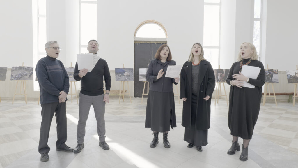 Der Film dokumentiert den russischen Überfall auf die Ukraine am 24. Februar 2022 und die darauffolgende Besatzung von Butscha, während derer die Bewohner:innen Hunger, Durst, und Kälte überstanden. Ihre gemeinsamen Aussagen ergeben eine Symphonie unterschiedlicher Perspektiven. Eine der vielen Geschichten handelt vom Chor der St.-Andrij-Kirche. Russische Soldaten töteten einen Sänger des Chors, sowie seine Familie und Nachbarn. Der Film erzählt die tragische Geschichte hinter den bestialischen Morden – und wie Überlebende der Familie heute mit dem Trauma leben müssen. Der Film zeigt auch die bisher unbekannte Geschichte eines ukrainischen Polizisten, der noch während der russischen Besatzung seinen Dienst tat. Privataufnahmen der Bewohner*innen, die Regisseur Michael Stadnik über drei Jahre hinweg recherchiert und gesichtet hat, vermitteln eindrücklich den Alltag unter Gewalt, Angst und Okkupation aus einer individuellen Perspektive.